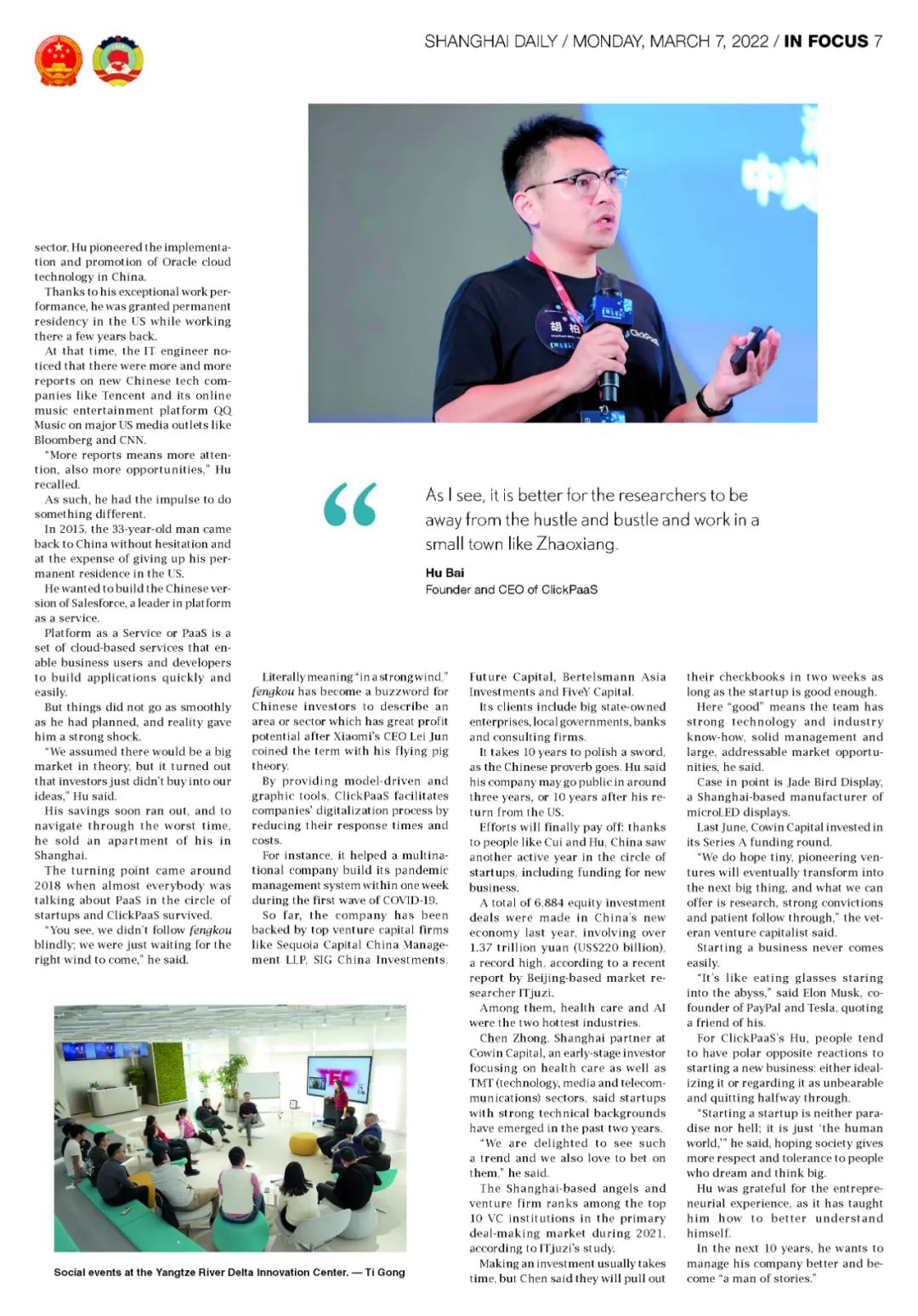 近日,凯发k8一触即发创始人、CEO胡柏接受了《上海日报》采访,关于自己当初为何选择创立凯发k8一触即发,又为何将公司落户于上海青浦,分享了其背后的故事。
